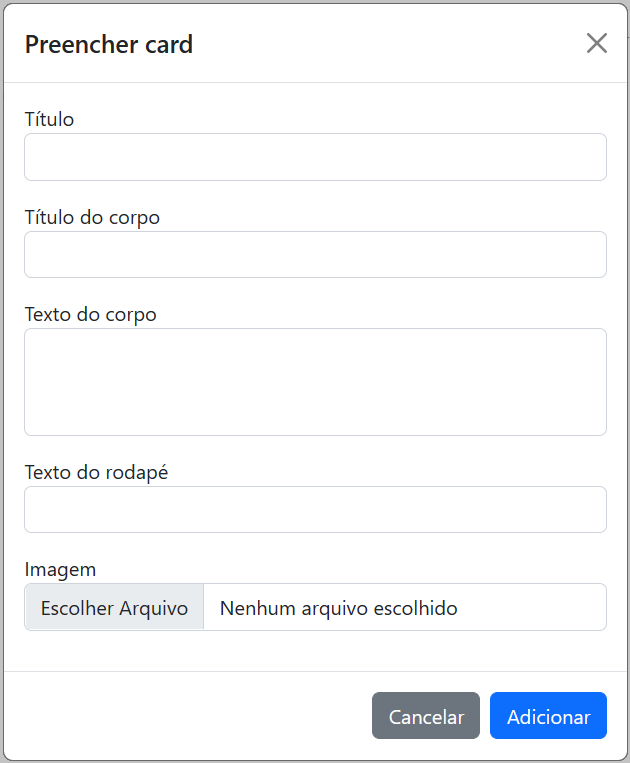 Os elementos do card (título, rodapé etc) só serão criados se o conteúdo for definido.