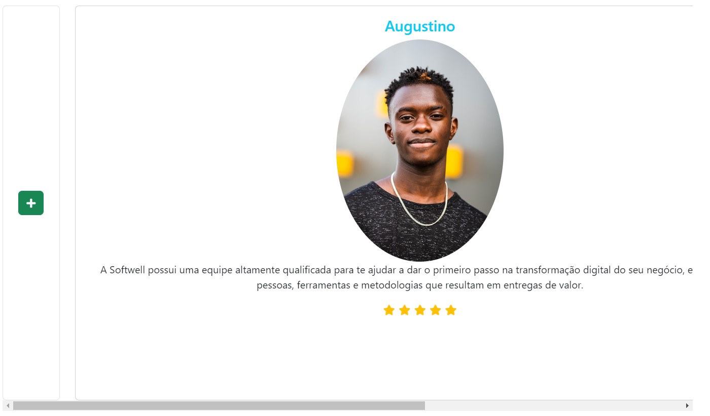 | Consulta SQL | Esta propriedade permite que o usuário crie um conjunto de cards, cujos dados de preenchimento são vindos do banco de dados, de acordo com a consulta estabelecida no campo. | SQL | Select crd_dados.crd_dad_id, crd_dados.crd_dad_titulo, crd_dados.crd_dad_bodytitle, crd_dados.crd_dad_textbody, crd_dados.crd_dad_bodytitle, crd_dados.crd_dad_footer, crd_dados.crd_dad_image |