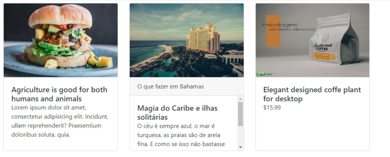 - A Altura dos Cartões será de acordo ao tamanho máximo do componente.