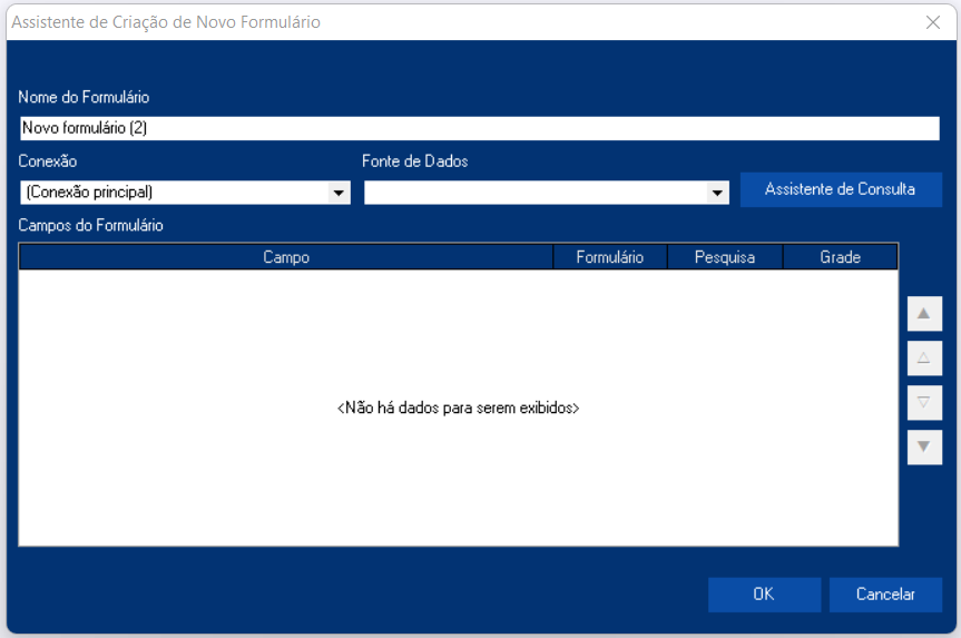 Executada a ação acima, aparecerá a tela Assistente de Criação de Novo Formulário: