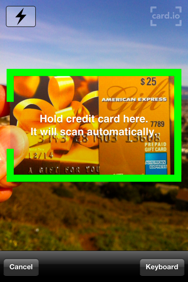 OBS: Será escaneado o número do cartão de crédito e será retornado um JSON com todos os dados do cartão de crédito.