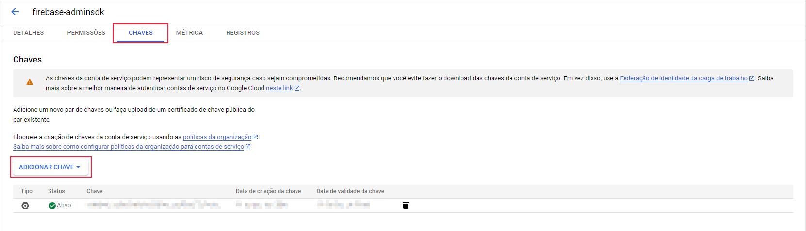 - Salve o arquivo .json em um local seguro, pois ele será utilizado como chave de API privada na função Push - Enviar Mensagem - Firebase.