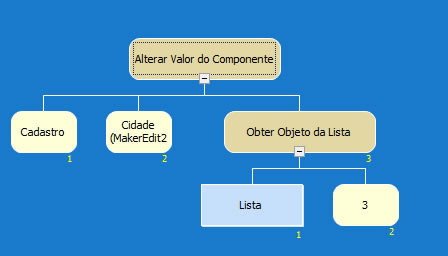 - No terceiro parâmetro informe a função Obter Objeto da Lista, como primeiro parâmetro desta função, informe a variável Lista e em seu segundo parâmetro informe o valor 3. Onde será retornado a cidade como elemento.