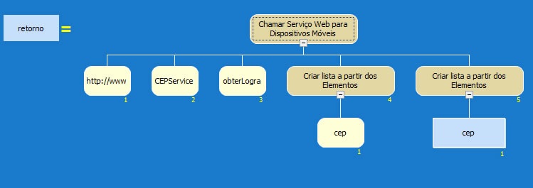 Adicione um objeto processamento e no montador de expressão, selecione a função Chamar Serviço Web para Dispositivos Móveis ( esta função é exclusiva da API do Maker Mobile).