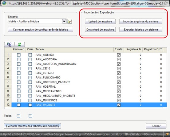 - Importar arquivos do sistema: esta opção é utilizada para atualizaras tabelas de saída com arquivo que foi carregado no passo anterior;