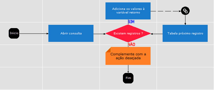 Observe que adicionamos o conteúdo da linha atual da tabela ao conteúdo existente na variável retorno.