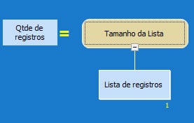 - Insira um objeto processamento e no montador de expressão selecione a função Tamanho da lista. Atribua seu retorno a variável Qtde de registros.