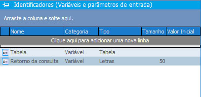 - Adicione um objeto Processamento e no Montador de Expressão utilize a função Abrir consulta. Atribua o resultado a variável Tabela.