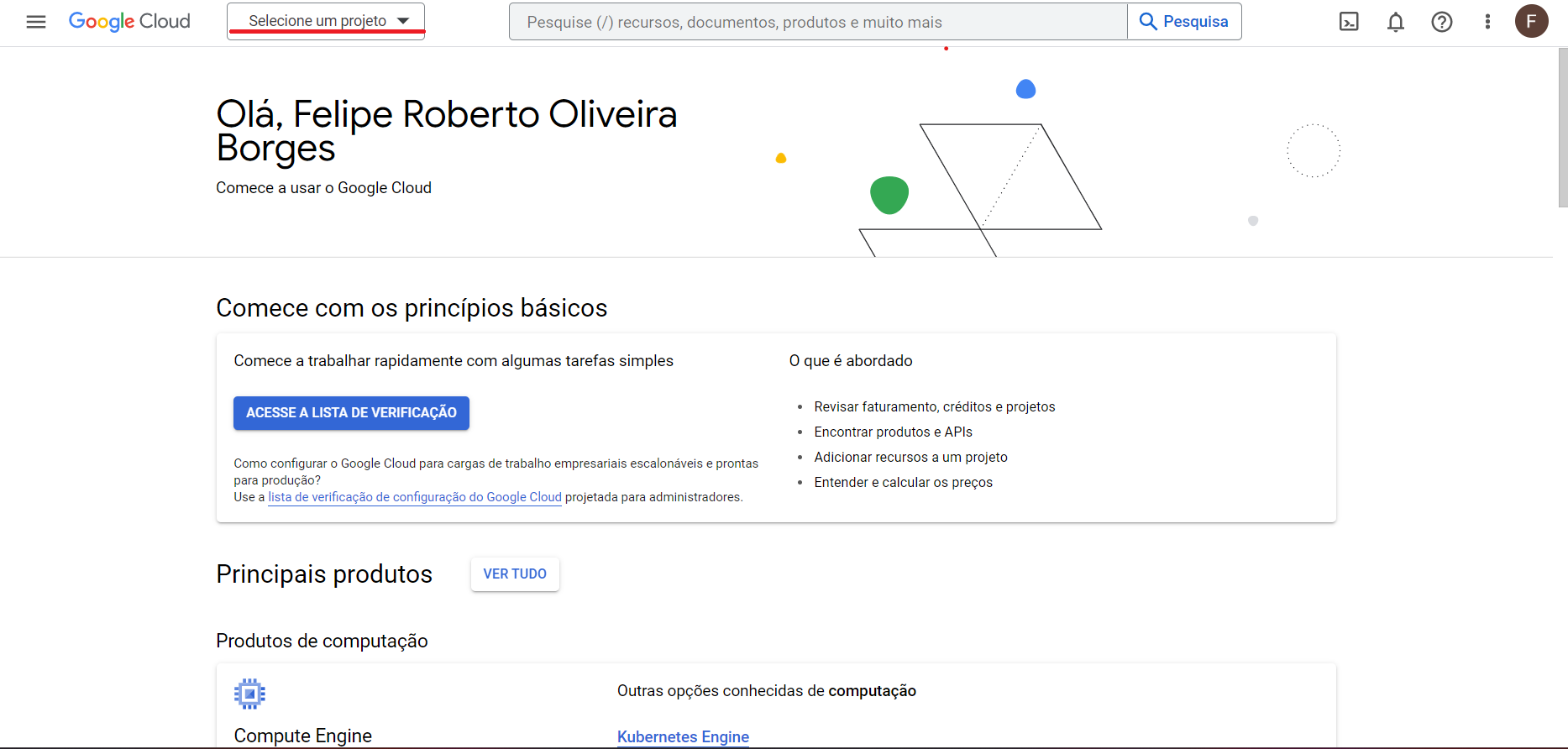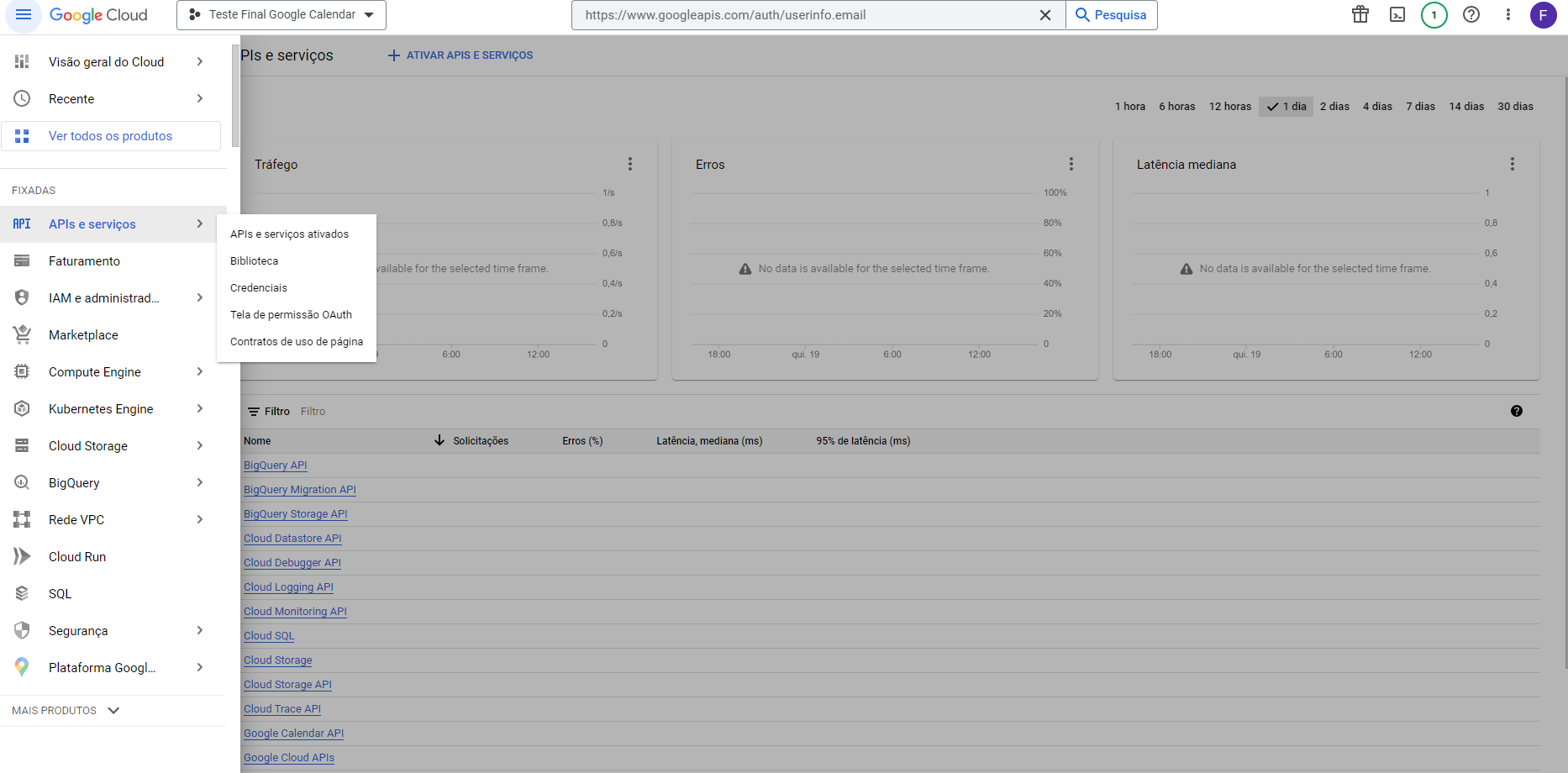 - Para realizar a integração com o Google Calendário é necessário acessar o Google Cloud e logar em uma conta Google.