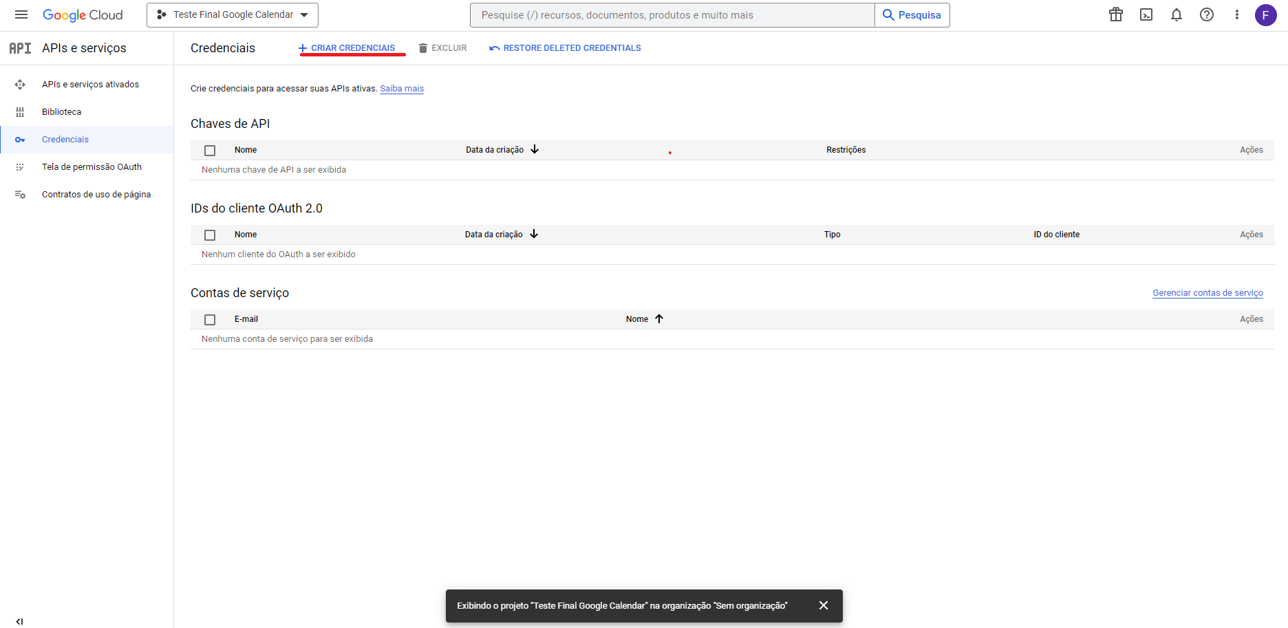Na conclusão das configurações, as funcionalidades do Google Calendar API estarão disponíveis para utilização em seu projeto.