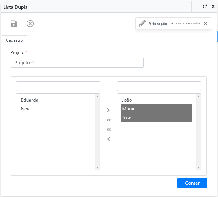 Este componente não registra Log, ou seja, não aparecerá nos Logs do webrun as ações de inserções, alterações ou deleções deste componente (Lista Dupla).
